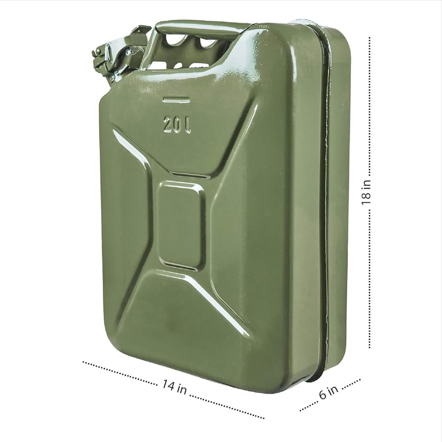 Combo Pack: Includes one 18-inch Folding Mini Shovel (High Carbon Steel) and one Heavy Duty 20L Steel Jerry Can in Military Green.