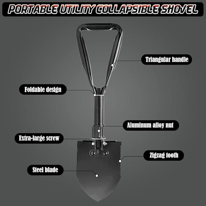 Folding Mini Shovel: Compact, portable, and foldable design makes it easy to carry for outdoor camping, hiking, gardening, and car emergency use.